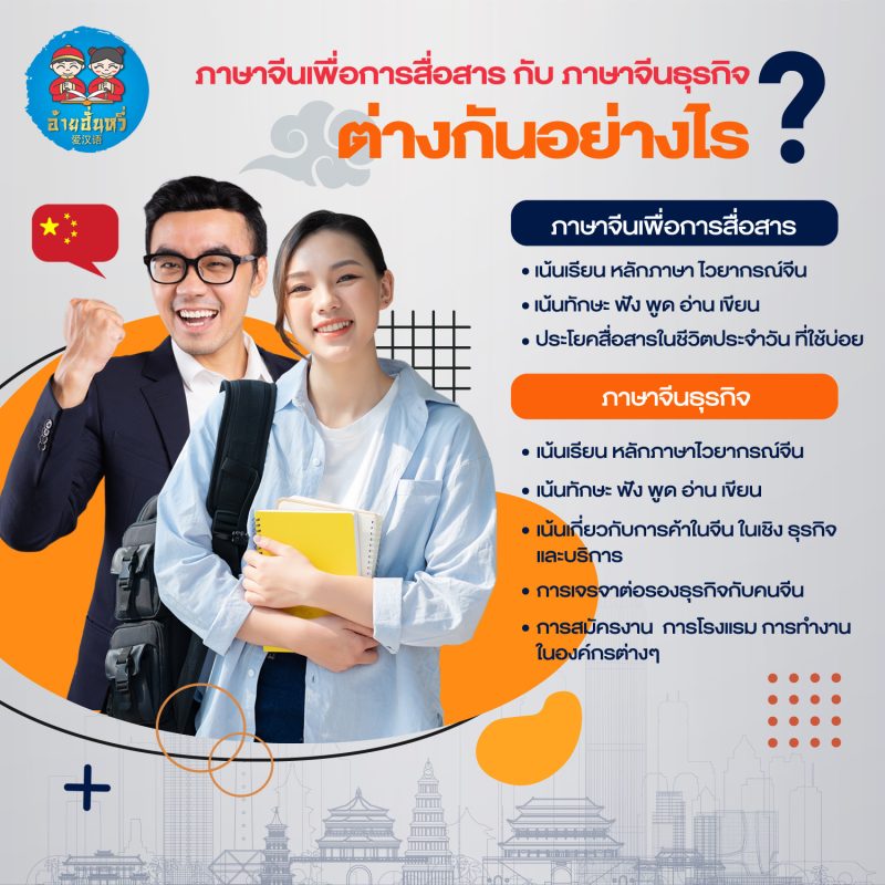ภาษาจีนธุรกิจ = การสื่อสารในบริบทธุรกิจอย่างมืออาชีพ เช่น การเจรจา ทำสัญญา ตอบอีเมล และการทำงานกับคู่ค้าชาวจีน